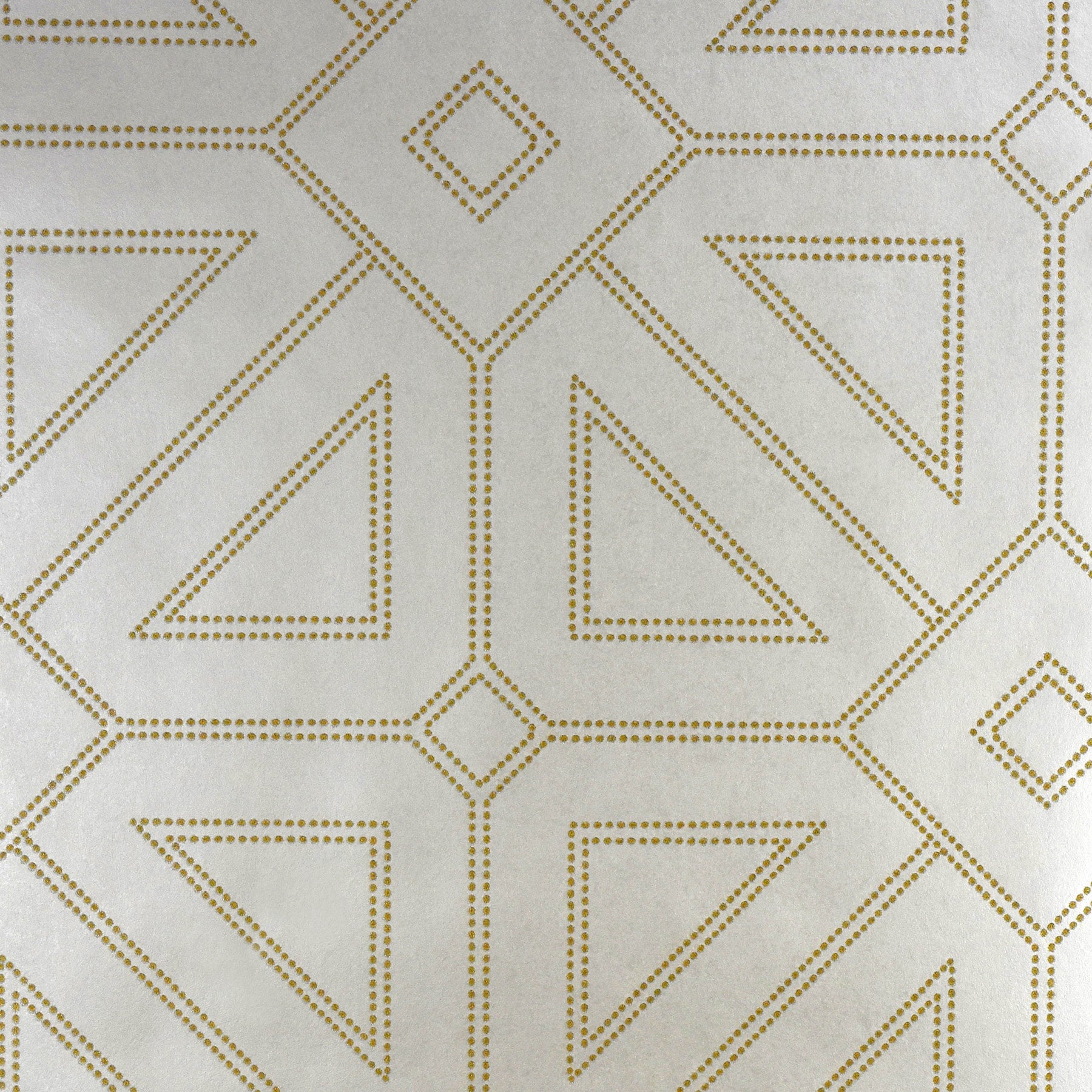 Bring a touch of glamour to your interiors with this stunning geometric design. Beaded golden dots form an embellished grid against a pearlescent silver background. Voltaire is an unpasted, non woven wallpaper.