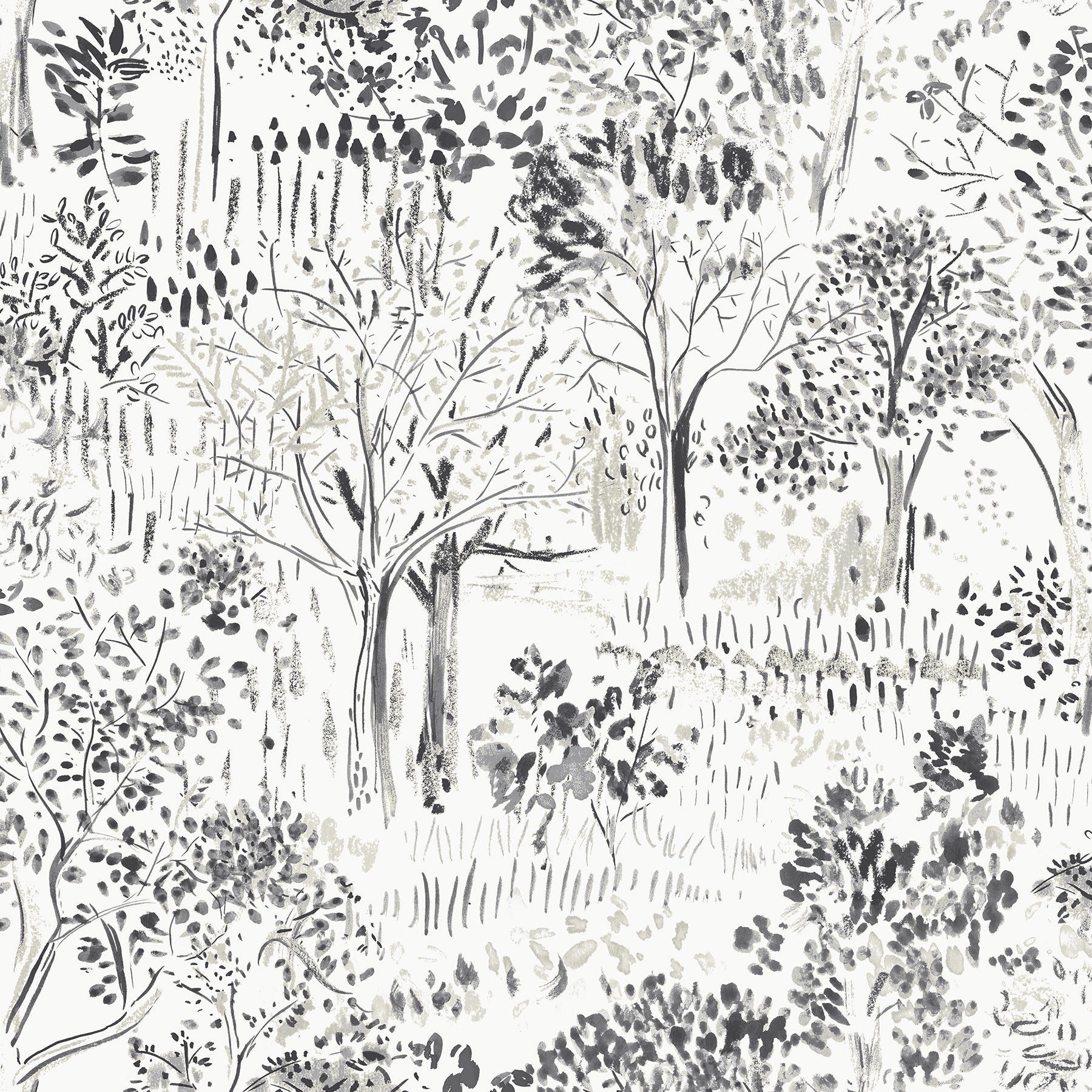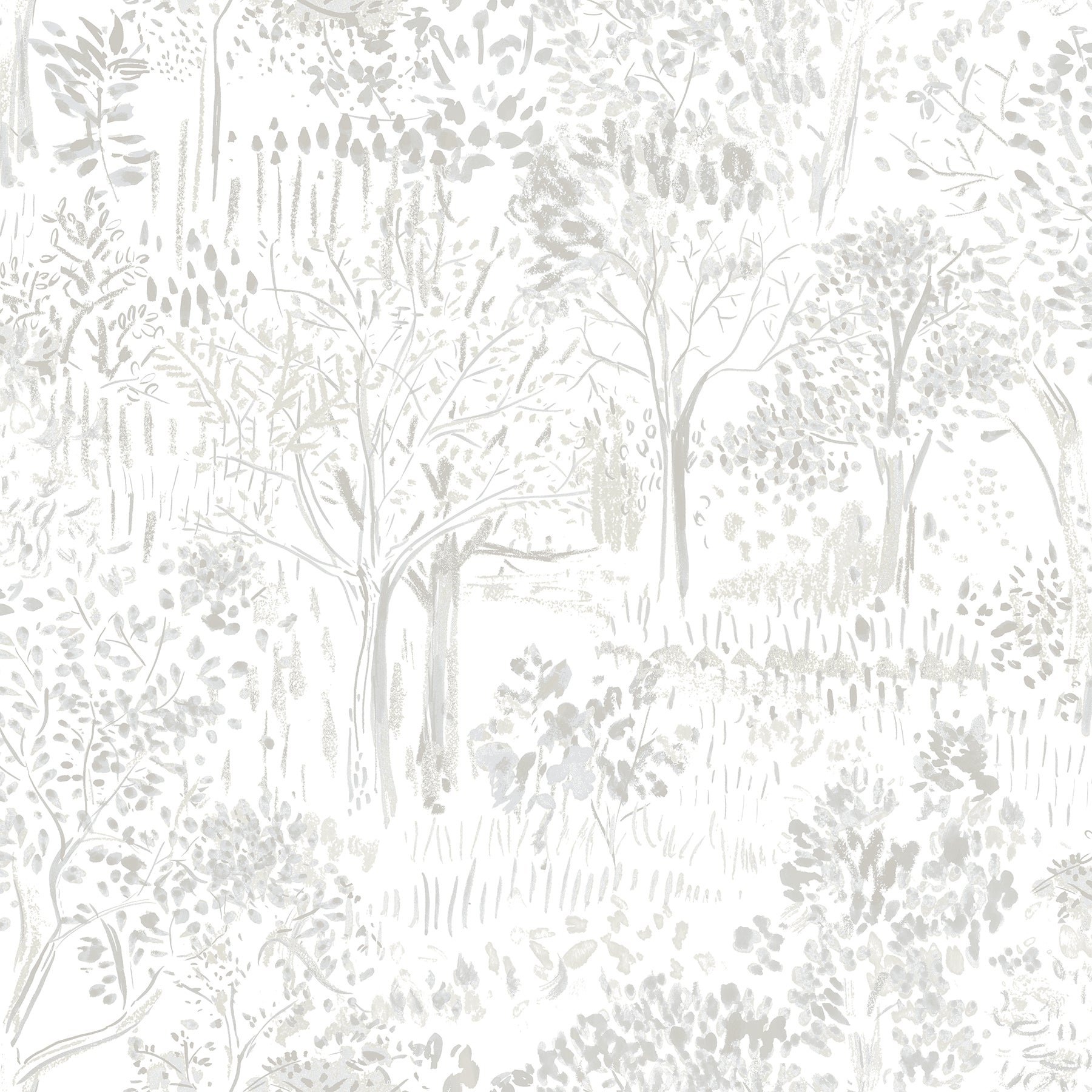 This abstract forest toile wallpaper offers classic beauty with a modern twist. The green watercolored trees are elegantly painted along a crisp white background. Walden is a prepasted, non woven blend wallpaper.