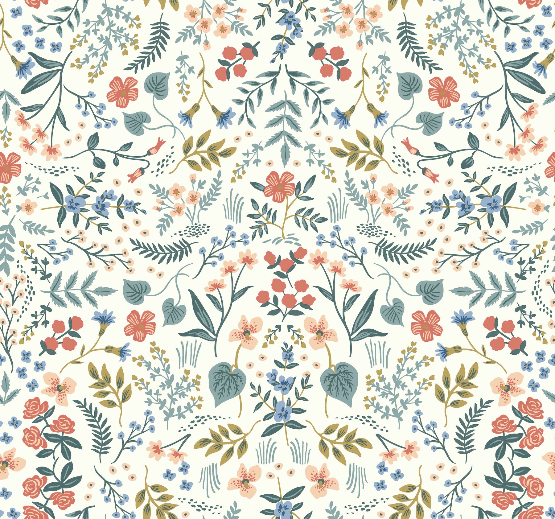 This deliberately-placed pattern of wildflowers and greenery in Rifle Paper Co.ís Wildwood pattern creates a detailed, natural floral design, inspired by antique botanical drawings. This Wildwood Wallpaper measures approximately 27 inches wide by 27 feet long, covering About 60.8 square feet per roll. Durable and easy to remove from primed walls, this friendly to hang unpasted nonwoven wallpaper is created with a special blend of synthetic fibers, making it both easy to hang and tear resistant.