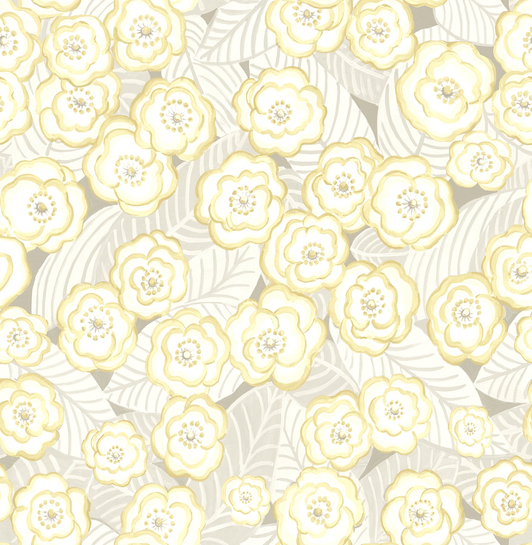 Charming and sweet, this painterly floral wallpaper has an eclectic charm. Its palette of light yellow and grey hues adds a modern touch to its whimsical style. Emery is an unpasted, non woven wallpaper.