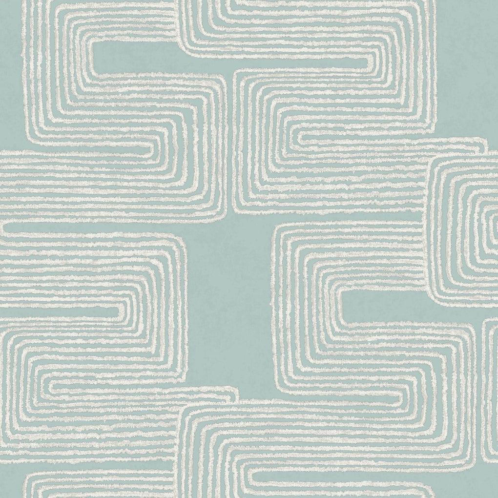 Winding layers of sinuous white strands are embellished with textural detailing and a metallic finish in sky blue Zulu Thread. This Zulu Thread Wallpaper measures approximately 27 inches wide by 27 feet long, measuring approximately 60.8 square feet per roll. Artistic experimentation with the interplay of form, color and texture has led to an avant-garde reimagining of familiar design motifs.